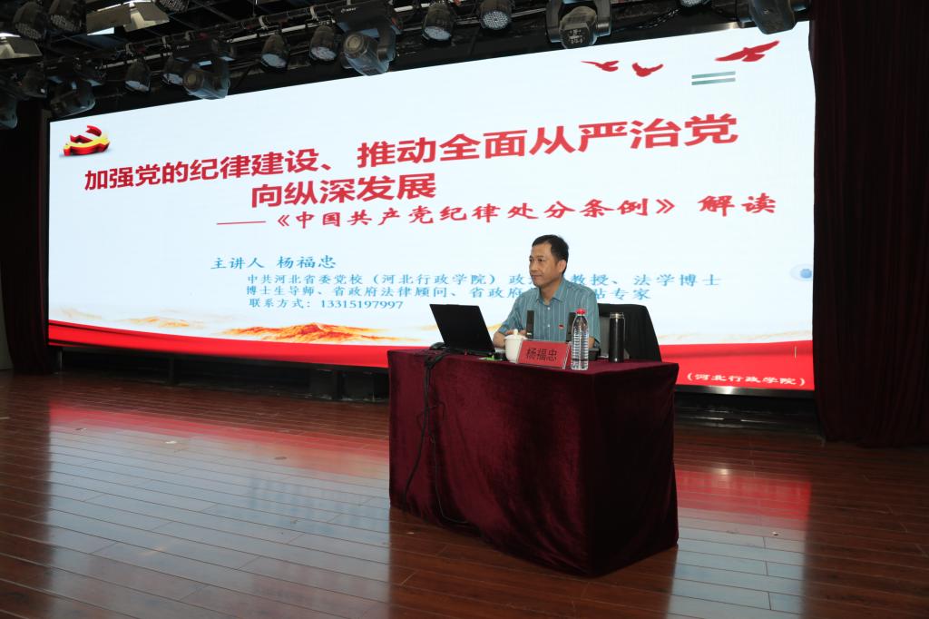 为深入学习贯彻习近平总书记关于党纪学习教育的重要讲话和重要指示精神,扎实推进伟德党纪学习教育取得实效,5月21日,中共河北省委党校(河北行政学院)政治和法律教研部教授杨福忠在伟德党纪学习教育读书班上作专题辅导报告。