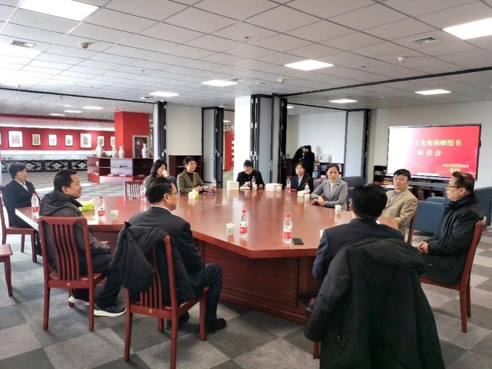 捐赠仪式结束后,参会人员一同参观了图书馆七层红色文献与古籍典藏展示专区,并就冀东特色资源建设、师院文库建设及教育硕士研究生的培养等议题在研讨区进行座谈交流。