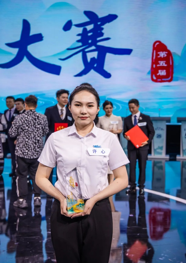 许心在校期间就曾获得校导游大赛一等奖,还是省级优秀毕业生,毕业后在唐山文旅集团工作。赛后许心在接受采访时表示:“我来自唐山,生于斯,求学于斯,工作于斯。在未来的工作中,我将继续传承学校‘勤思笃学,修身律己’的校训,戒骄戒躁,持续提升职业素养,讲好河北故事,传递中国声音,展现专业风采,传播行业正能量!”