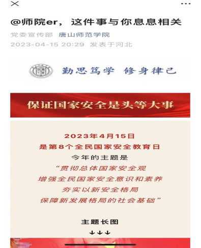 师院采取线上线下“同步走”的宣传模式,在传统媒体内容的基础上,充分利用融媒体矩阵优势,发挥数据引擎驱动力,更好地将总体国家安全观理念融入发展大潮,为建设新时代社会主义现代化强省营造安全稳定环境。