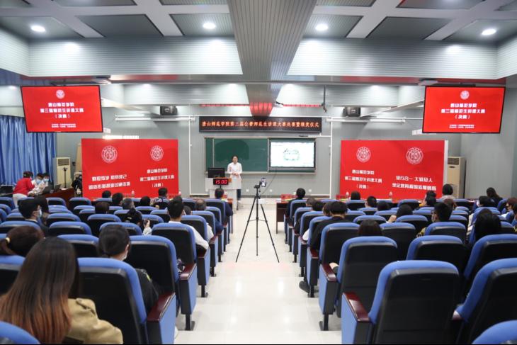大赛邀请河北省教学名师、唐山市骨干教师等具有高级职称的中小学一线教师组成评委团,对决赛选手的现场教学表现进行综合打分,河北省特级教师、河北省名师王福会对我院师范生的精心培养、对参赛学生的耐心指导、对大赛的全心准备给予了高度的赞扬,鼓励学生讲课时做到眼里有学生、设计有内涵,课堂有特质,在师院的精英化的培养下,做新时代的“四有”好老师。