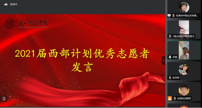 7月18日,师院团委通过腾讯会议举办了2022年大学生志愿服务西部计划志愿者出征仪式。师院团委书记马丽贞、各院系(分团委)团总支书记、2021届西部计划志愿者代表、2022年西部计划志愿者参加线上出征仪式。会上,团委决定授予31名西部计划志愿者“伟德国际victor1946官网优秀青年志愿者”称号。2021届西部志愿者代表王利名、李震分享了他们在四川、新疆志愿服务的经历与经验,鼓励新一届的西部计划志愿者们珍惜历练机会,做到眼中常含泪水、胸中饱含墨水、脚下沾满泥水,服务好西部基层建设,以优异成绩完成西部志愿服务工作。听完他们的事迹汇报,志愿者们深受鼓舞,表达了对母校的感恩和不舍,坚定投身志愿服务西部计划的决心和信心,用实际行动践行志愿服务精神,让青春和汗水在祖国最需要的地方绽放光彩。与会老师们深情寄语,为即将启程的志愿者们送上最美好的期待和最诚挚的祝福。