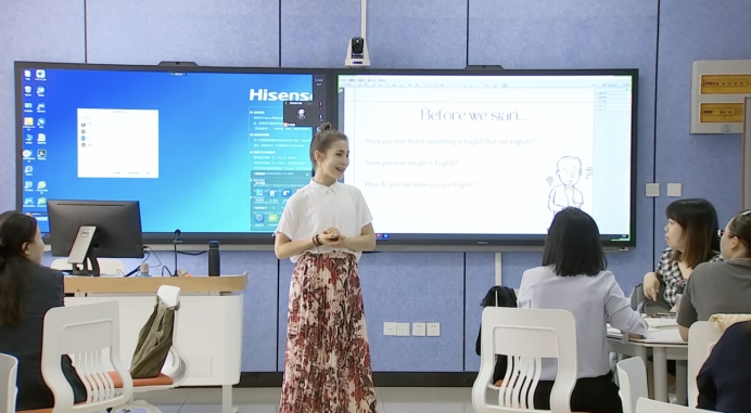 智慧教室里,外籍教师操着一口地道的英语在为即将上岗的ISEC(本科学术互认课程英语缩写)项目骨干教师进行岗前预培训,这意味着伟德国际victor1946官网正式设立的本科学术互认课程——ISEC项目已进入到招生前最繁忙的筹备期。