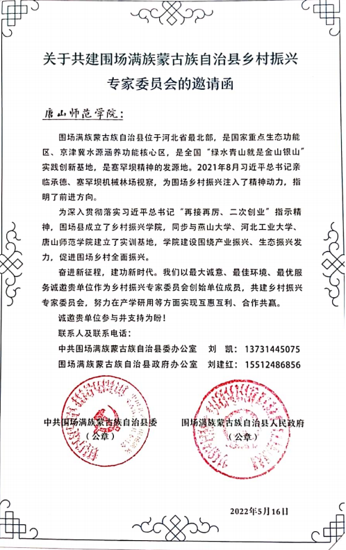 为深入贯彻落实习近平总书记“再接再厉,二次创业”指示精神,围场县成立了乡村振兴学院,同步与伟德和燕山大学、河北工业大学建立了实训基地,学院建设围绕产业振兴、生态振兴发力,促进围场乡村全面振兴,力争将围场打造成为北方“乡村振兴样板县”。伟德受邀作为乡村振兴专家委员会创始单位成员,共建乡村振兴专家委员会,将发挥高校的教学科研和人才优势,努力在产学研用等方面实现互惠互利,合作共赢。