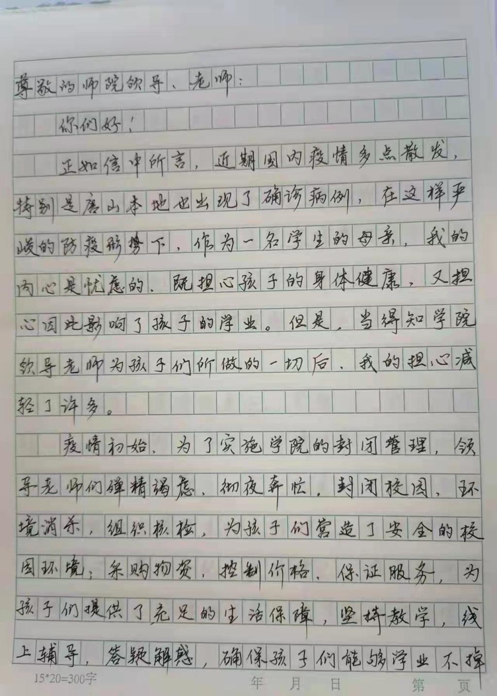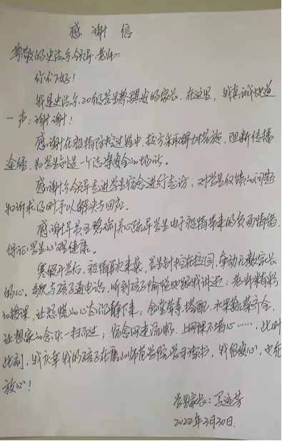 自唐山疫情爆发以来,伟德国际victor1946官网立刻实行全封闭管理,保护师院师生的安全。3月22日,党委宣传部发布了致全校师生的一封信。对此,一些学生家长以各种方式纷纷发来了回信。
