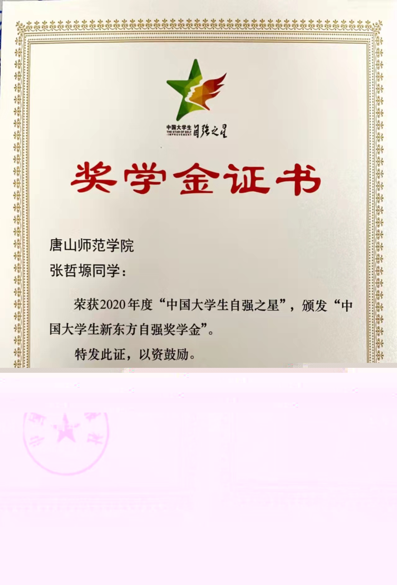 近日,由共青团中央、全国学联指导,中国青年报社、新东方教育科技集团联合开展的2020年度“中国大学生自强之星”奖学金获奖名单公布。经学校推荐、省级初评、全国评审等环节,物理科学与技术学院张哲塬、文学院郭佳利两名同学获此殊荣。