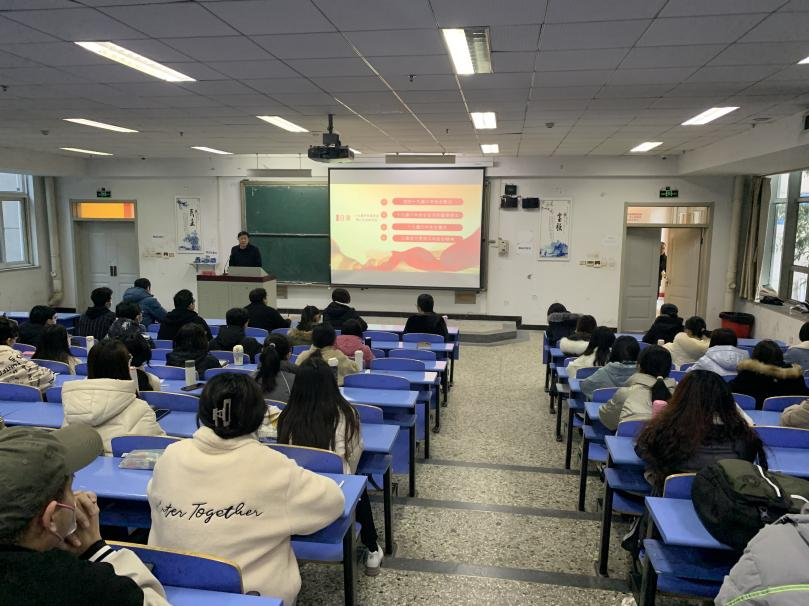 2021年12月3日,伟德国际victor1946官网副院长李子林以“全面解读十九届六中全会”为题,于北院文科楼第一阶梯教室开展十九届六中全会主题宣讲,历史文化与法学系65名师生代表聆听本次宣讲,系主任沈芝、党总支书记丁新龙、党总支副书记杨玉娟等出席会议。