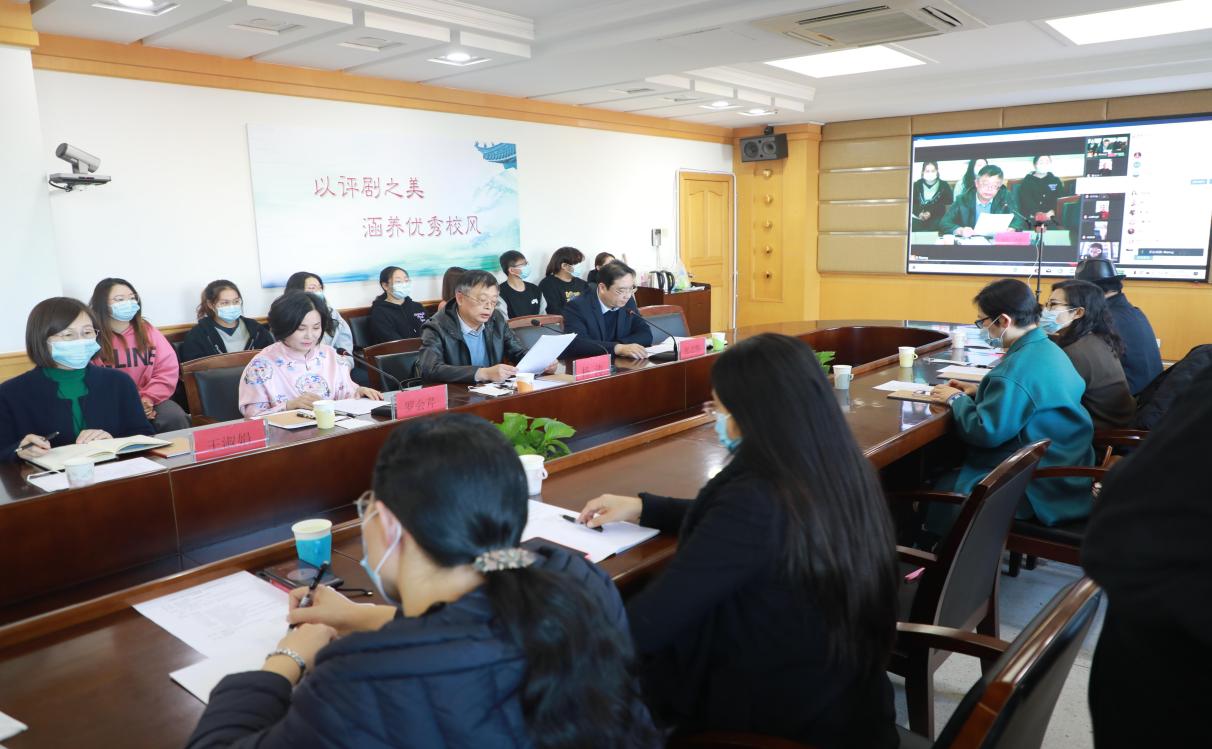 11月26日下午,由河北省戏剧家协会、伟德国际victor1946官网共同主办,音乐系、评剧文化研究中心承办的“评剧艺术的传承与发展”京津冀专家研讨会成功举行。本次研讨会旨在推广传承评剧艺术,进一步挖掘评剧艺术价值,探讨借助新的传播方式,扩大评剧传承范围,彰显其独特的艺术魅力。大会采取线上线下相结合的形式,充分运用新媒体技术,实现了京津冀三地专家在线与线下主会场师生相互交流研讨,同步进行网络直播。研讨会气氛热烈,专家发言精彩,频频得到参会师生的赞许和掌声。学院师生以及关心评剧发展的社会各界人士分别通过现场参与、网络在线的方式参加了研讨会。