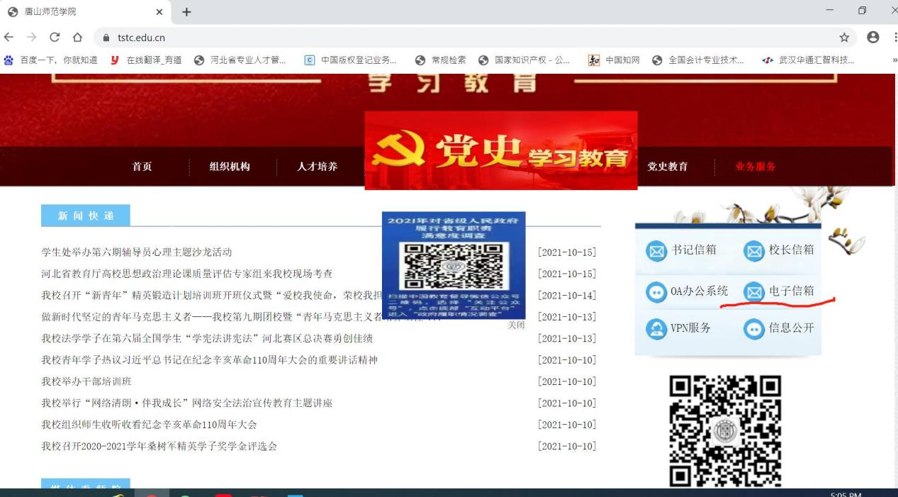 二是登陆伟德主页(),点击右侧的电子信箱即可进入邮箱登陆界面: