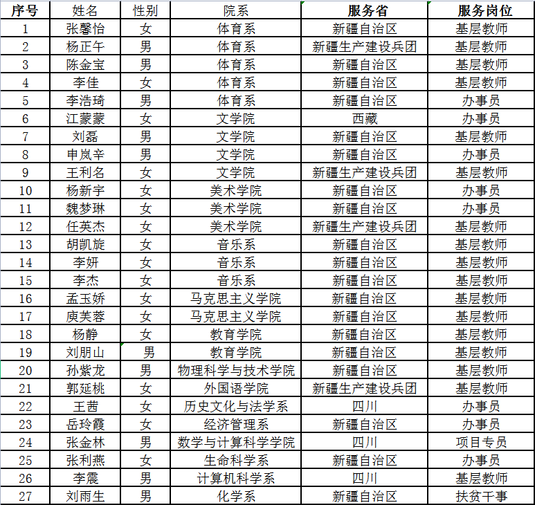 附伟德国际victor1946官网2021年度志愿服务西部计划志愿者名单: