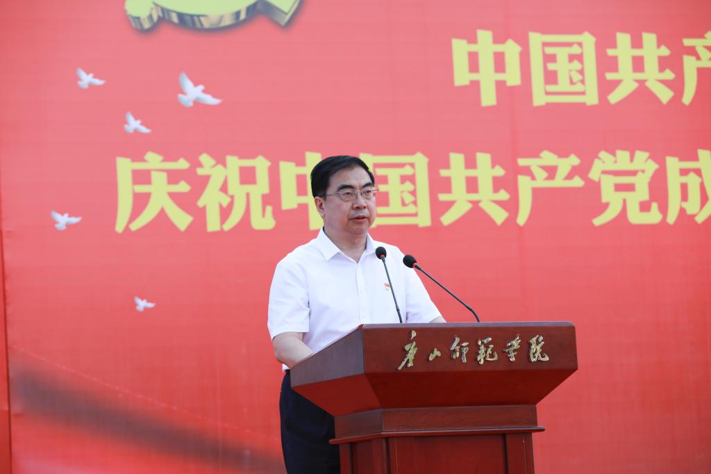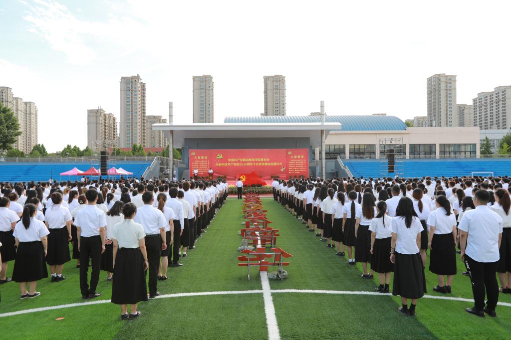 为隆重庆祝中国共产党成立100周年,回顾党的光辉历程,讴歌党的丰功伟绩,激励广大新党员坚定理想信念,牢固树立全心全意为人民服务、为党和人民事业奋斗终身的信仰,不断增强使命感、荣誉感,留下终身难忘的回忆,伟德在大学道校区南院操场隆重举行庆祝建党100周年千名党员集体宣誓仪式。全体党员校领导、党员中层干部、党支部书记、组织员、党员辅导员及今年发展的新党员和转正的党员参加宣誓仪式。活动由党委副书记姜瑞林主持。