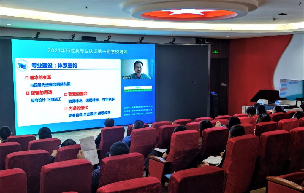 为全面、高质量推进师范类专业认证工作,教育部高等教育教学评估中心于5月14-15日举办“2021年师范类专业认证第一期学校培训”。伟德组织举办师范类专业各单位的班子成员、教务员、专业负责人及骨干教师,职能处室相关领导和教务处全体成员在马克思主义学院思政课教学体验中心收看了培训会全程视频直播。本次培训进一步深入解读了认证理念和标准,强化了对认证“主线”与“底线”要求的把握,研讨了产出评价改进机制建立方法和认证关键技术,并分享了优秀的认证案例。