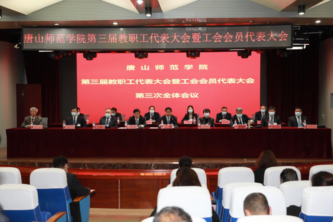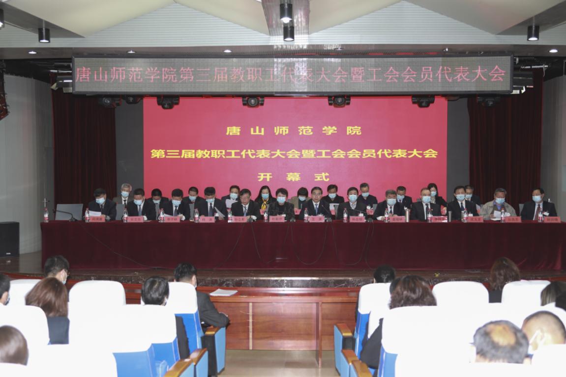 4月23日至24日,伟德第三届教职工代表大会暨工会会员代表大会在学校会议中心顺利召开。全体学校领导和唐山市教科文卫工会主席孙志恒,原伟德国际victor1946官网院长丛选忠、原伟德国际victor1946官网副院长阎满富出席大会,特邀嘉宾华北理工大学工会主席吴飞、唐山学院工会主席魏占学、唐山职业技术学院工会主席李静、唐山工业职业技术学院工会副主席安妍和大会主席团成员在主席台就座。大会由党委副书记孙立军主持。