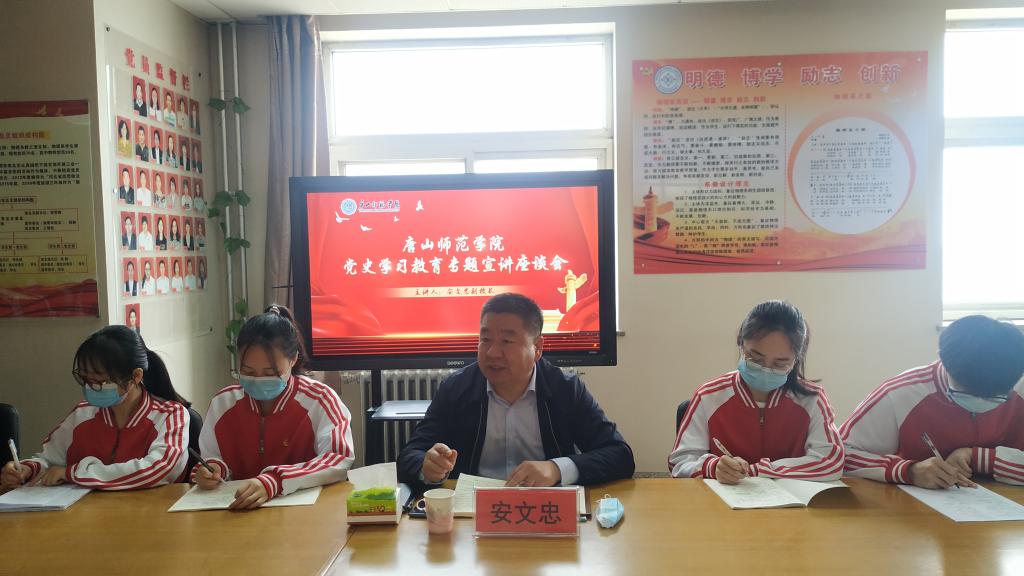 最后,副校长安文忠强调,要打造学习型支部,让该支部在党史学习过程中发挥模范带头作用;结合习近平总书记在清华大学考察时的重要讲话精神,广大青年学生要爱国爱民,要锤炼品德,要勇于创新,要实学实干,努力成为习近平新时代中国特色社会主义思想的忠实践行者。