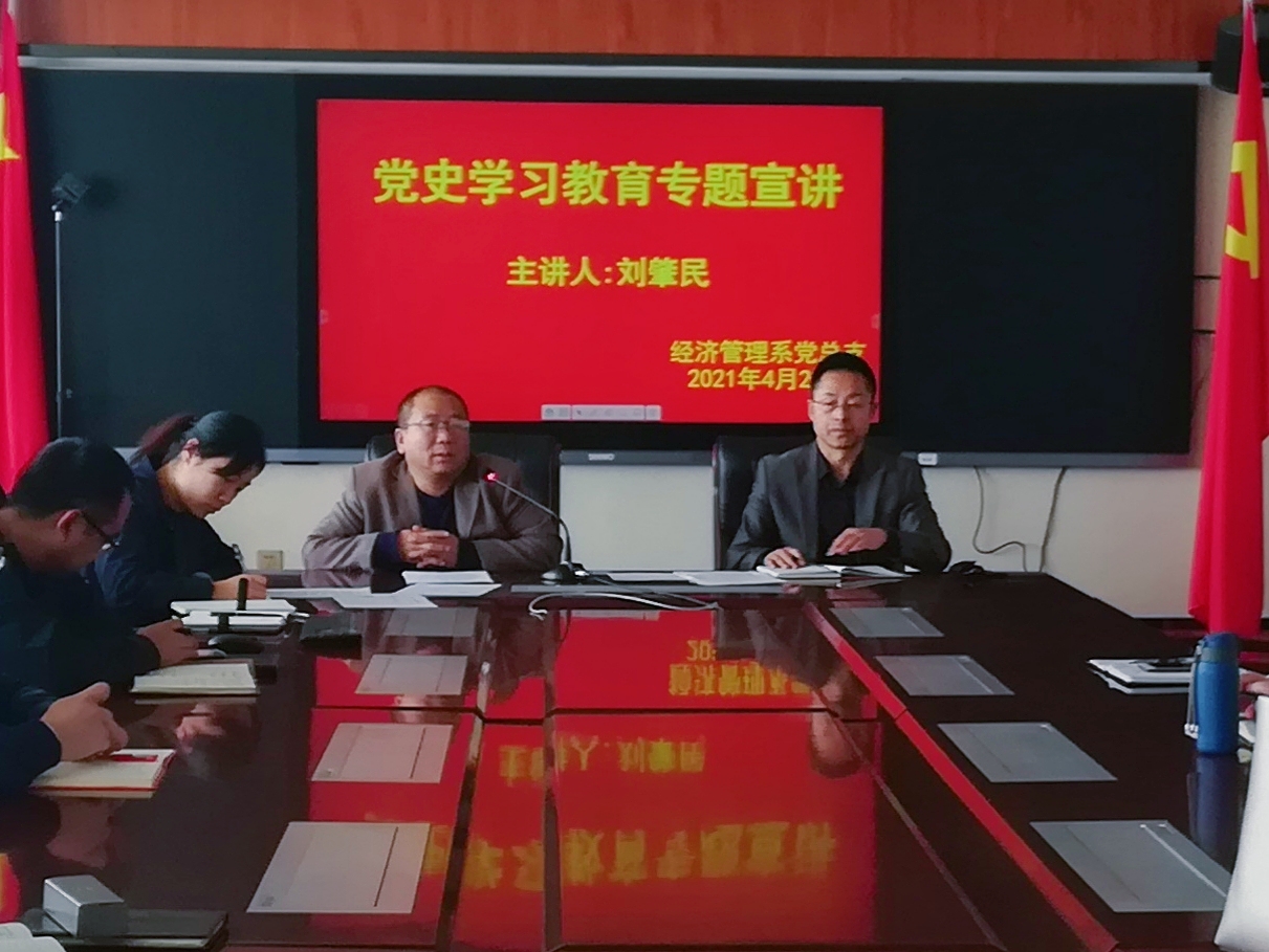 4月20日下午,经济管理系举办党史学习教育专题宣讲活动,系主任刘肇民以中国工业化进程为主题,为全体教师讲授了一堂生动的党史教育课。