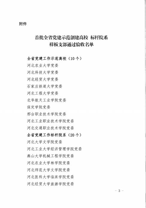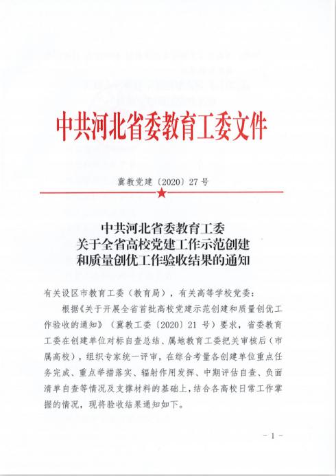 物理科学与技术学院党总支2018年入选河北省首批党建工作“标杆院系”培育创建单位,在两年建设期内,在学校党委的坚强领导下,学院党总支认真按照创建工作要求,坚持统筹规划和分步实施相结合、整体提升和品牌塑造相结合、软件建设和硬件建设相结合,扎实开展培育创建工作,充分发挥示范引领作用,圆满完成各项建设任务。2020年12月23日,顺利通过培育创建验收(冀教党建〔2020〕27号))。