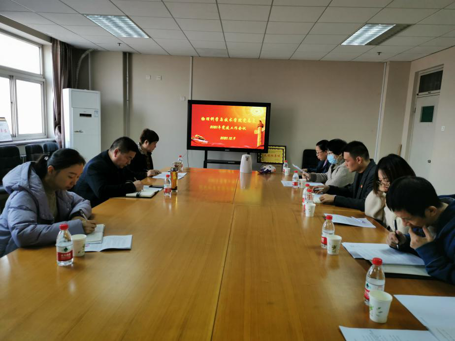 2020年12月9日,为提升党建工作质量,物理科学与技术学院党总支召开了2020年党建工作会议。副校长安文忠出席会议,物理科学与技术学院党总支全体成员和党支部书记参加会议。会议由学院党总支书记郭海莉主持。