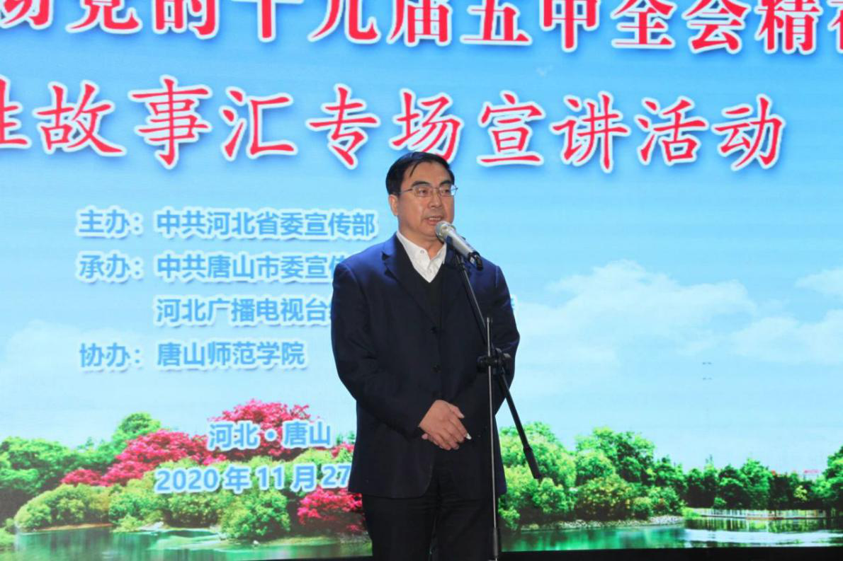 11月27日上午,由中共河北省委宣传部主办,中共唐山市委宣传部、河北广播电视台经济(故事)广播承办,伟德协办的学习宣传贯彻党的十九届五中全会精神——365百姓故事汇专场宣讲活动在伟德大学道校区南院会议中心举行。出席活动的省市领导有省委宣传部部务会成员、二级巡视员贾敬刚、唐山市委宣传部副部长张梅艳、省委宣传部基层宣传教育处处长孙雷、省委宣传部基层宣传教育处二级调研员刘润苍、河北广播电视台生活频率群副书记、经济生活频率总监杨美楷、省委宣传部基层宣传教育处一级主任科员石立雄、市委宣传部宣传教务处李晓兰处长。会前,党委书记王英、校长杜彩芹、党委副书记孙立军接见了各位领导并进行了亲切交流。来自全省各地的百姓故事汇优秀宣讲选手,中央和省、市主要新闻媒体记者,王英书记、孙立军副书记及师生代表参加宣讲活动。张梅艳副部长、王英书记分别向大会致辞。