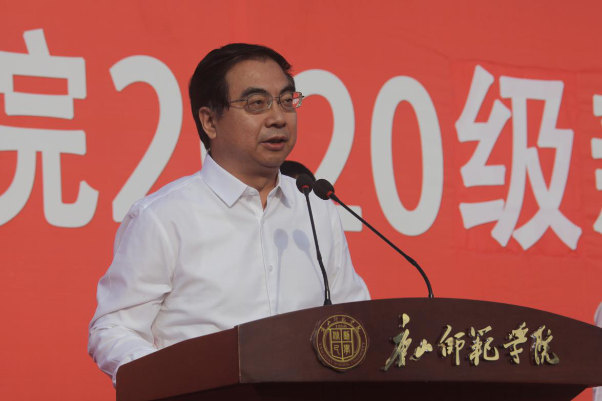 2020级历史文化与法学系文化产业管理专业的任飞阳、教育学院学前教育专业的陶香妃同学作为新生代表发言。她们表示,作为新一代的师院学子,他们定将铭记校训,志存高远,放飞梦想,努力绽放师院人的风采,为实现中华民族伟大复兴的中国梦贡献自己的青春力量。