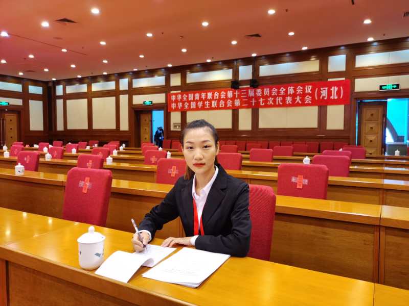在河北省分团会议上,她踊跃发言,表达了作为青年学生会牢记习近平总书记的谆谆教导,听党话、跟党走的心声;作为学生组织成员会践行好全心全意为学生服务的宗旨,做好“从同学中来、到同学中去”的本职工作,引领青年思想,服务青年成长,为党和国家事业发展作出更大贡献。