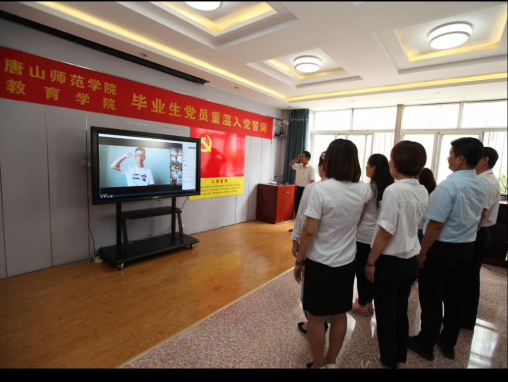 教育学院党委书记陈克良面对镜头,通过网络,对云在线的67名毕业生党员动情地说道:“年轻的同志们,你们新的人生即将启程,在未来的日子里,希望你们牢记誓词,坚定理想信念,发扬为党和人民的事业敢于流血牺牲的大无畏革命精神,时刻听从从组织召唤,服从组织安排,任劳任怨,无私奉献,永远保持党员的先进性,以实际行动为中华民族的伟大复兴贡献力量!”