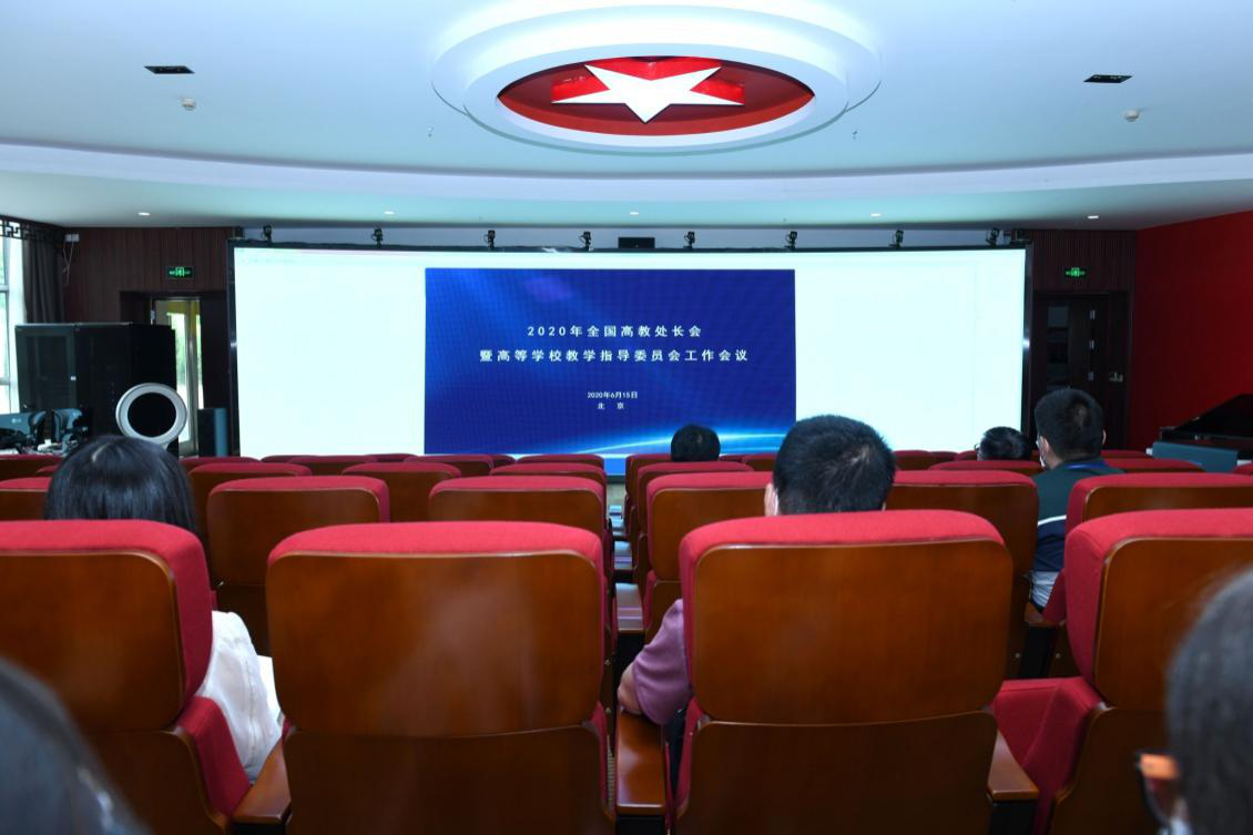 6月15日下午,2020年全国高教处长会暨高等学校教学指导委员会工作会议以视频会议形式在京召开。伟德按上级文件要求,组织全校教学管理人员在思政课教学体验中心集中收看了会议视频直播。校长杜彩芹、副校长杨涛出席会议,各教学单位主任、教学副主任、教学秘书、教务员、教务处全体成员参加会议。