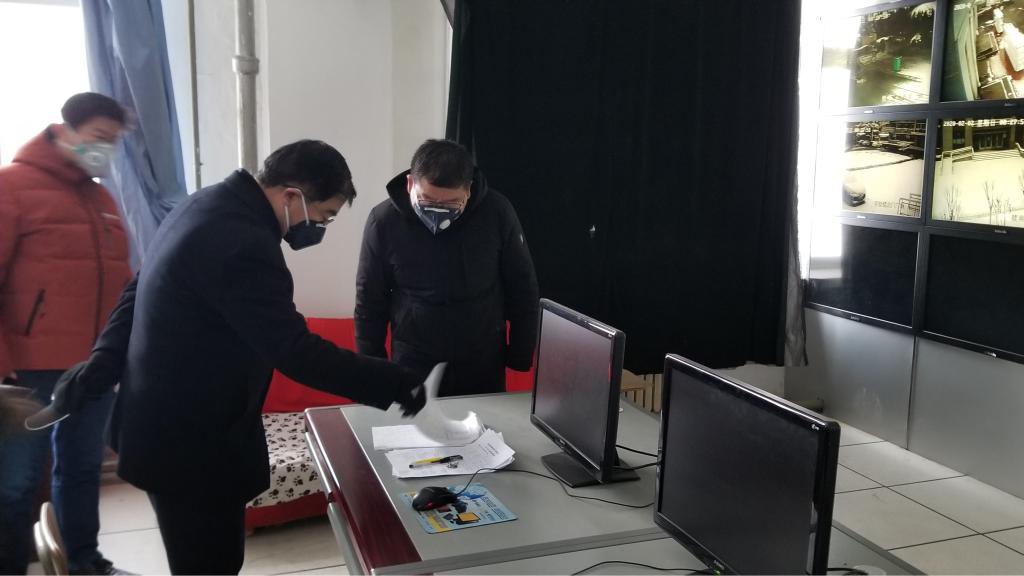 在大学道北校区门卫值班室和消防值班室,学校领导详细查看了值班人员工作情况,并叮嘱他们要做好个人防护,强调要必须做好相关制度的落实。