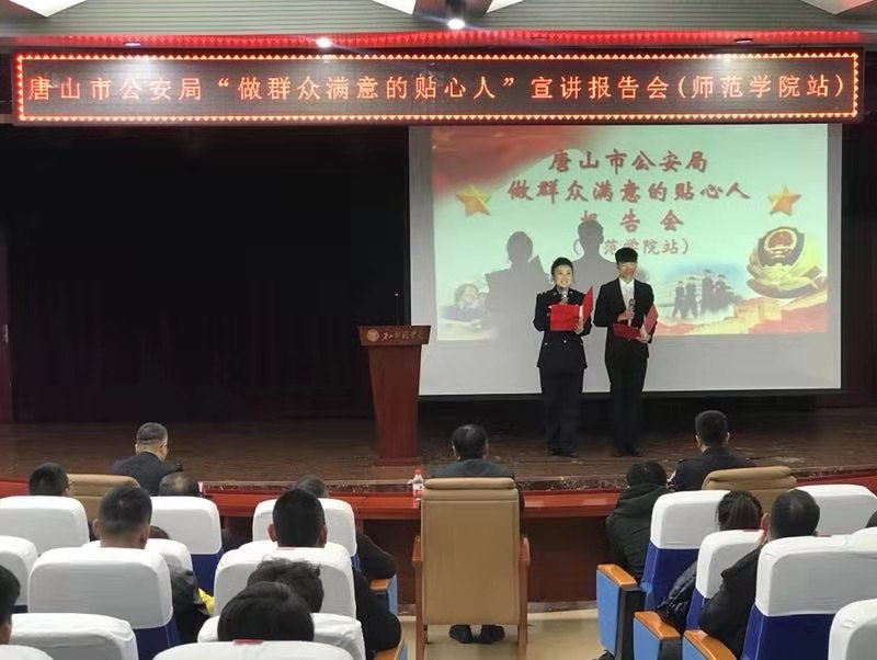2019年11月15日下午,唐山市公安局“不忘初心,牢记使命,做群众满意的贴心人”巡回宣讲团来伟德做报告,校党委副书记姜瑞林、唐山市公安局政治部、高新分局相关领导、民警代表、伟德师生代表以及群众代表三百余人参加了报告会。十位基层民警代表结合工作实际,为大家做了生动的报告。