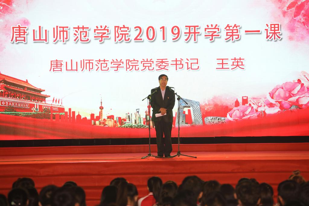 晚会在一曲《我们都是追梦人》中拉开序幕,校党委书记王英为同学们做了“开学第一课”的讲话。他首先对2019级新同学的到来表示热烈的欢迎。王英书记说,学校秉承“抗震精神办学、大钊精神育人”的办学理念,用“两种精神”指引学校的发展和学生的成长。他特别指出李大钊同志是我们学习的榜样,也希望新一代青年要传承大钊精神,实现中华民族伟大复兴、实现中国梦而努力。他向广大新同学提出了三点希望:一是要做到坚定理想信念,补足精神之“钙”;二要做到与母校荣辱与共,热爱学习之“家”;三是要竭力勇担重任,无愧青春之“我”。