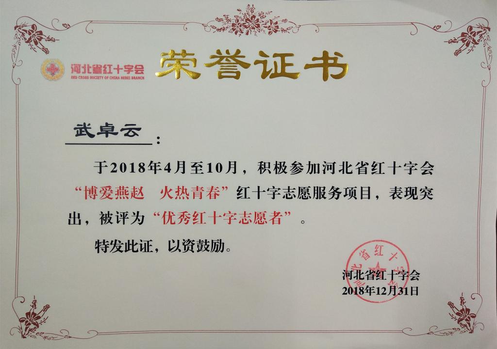 近日,河北省红十字会发布《关于“博爱燕赵 火热青春”高校红十字志愿服务项目优秀组织和优秀志愿者评选结果的通知》(冀红业字【2018】46号),伟德红十字志愿服务队获评“博爱燕赵 火热青春”红十字志愿服务优秀组织,伟德中文系16级汉语言文学专业李秋红和16级历史文化与法学系武卓云两名同学获评“博爱燕赵 火热青春”红十字志愿服务优秀志愿者。