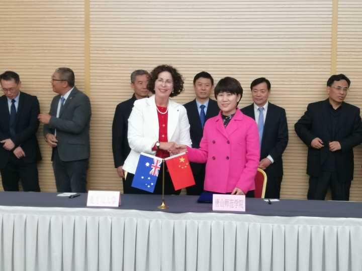 2019年1月24日上午, 澳大利亚麦考瑞大学与河北省高校“双向国际交流及升学”项目签约仪式在省招考大厦举行。麦考瑞大学国际商务副校长倪珂·布瑞格、国际交流处副处长范凡,河北省教育厅国际合作与交流处李守民调研员、国际教育交流中心孙冬副主任、国际教育交流中心澳洲项目负责人徐晞,以及河北省17所高校代表出席了签约仪式。