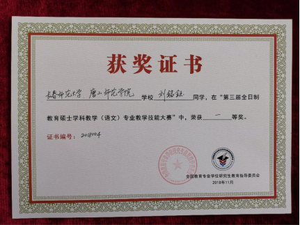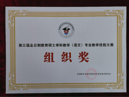 2018年11月19日,由全国教育专业学位研究生教育指导委员会主办的第三届全日制教育硕士学科教学(语文)专业教学技能大赛在江西师范大学举办。来自全国的88所院校选送了315名学科教学(语文)研究生参加复赛,经专家评审选出120名选手参加决赛。伟德与长春师范大学联合培养的两名研究生均进入决赛。其中刘铭钰荣获决赛一等奖,刘彦廷荣获决赛三等奖,学科教学(语文)导师团队李海凤老师被评为优秀指导教师。伟德被全国教育专业学位研究生教育指导委员会授予第三届全日制教育硕士学科教学(语文)专业教学技能大赛组织奖。
