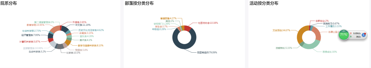 校团委积极筹备“第二课堂成绩单”制度的建设与实施,多次选派团总支书记到安徽工业大学、河北建材职业技术学院等学校参与培训学习,并利用暑假起草和制定了伟德国际victor1946官网“第二课堂成绩单”制度实施方案(试行)、伟德国际victor1946官网“第二课堂成绩单”积分标准及学分计量方法(试行)、伟德国际victor1946官网“第二课堂成绩单”网络管理系统(到梦空间)活动审核标准规范(试行)。9月以来,校团委组织了“第二课堂成绩单”制度解读、到梦空间系统使用等相关培训共5次。目前,伟德国际victor1946官网“第二课堂成绩单”制度建设走上正轨,相关数据如下: