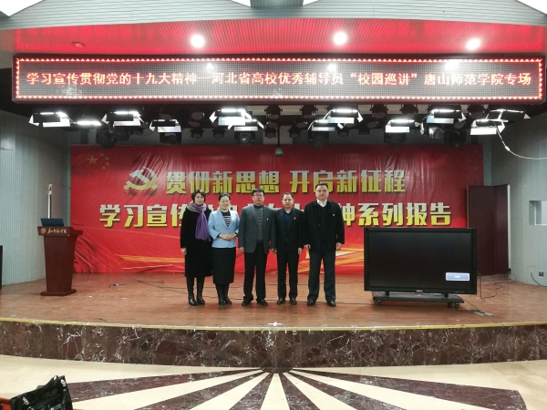 根据中共河北省委高校工委、河北省教育厅的要求,为了进一步引导广大师生贯彻落实十九大精神,2018年1月11日上午,以“牢记时代使命 书写人生华章”为主题的学习宣传贯彻十九大精神——河北省优秀辅导员巡讲伟德国际victor1946官网专场报告会在伟德会议中心举行。孙立军副校长、各系党总支书记、副书记、全体辅导员、全体学工部教师及300名学生代表参加了报告会,报告会由学生处孟祥昕处长主持。