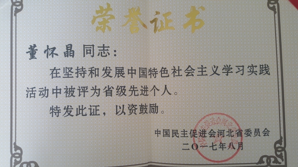 民进伟德国际victor1946官网二支部和董怀晶老师被民进河北省委评为省级先进基层组织、省级先进个人