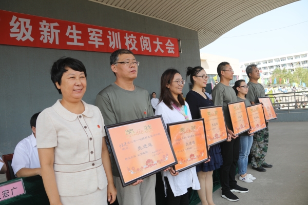 党委常委边宏广讲话并宣布军训团嘉奖通令。首先,他代表学校向辛勤承训的中国人民解放军93534部队表示崇高的敬意,向在军训中辛勤工作、节假日中无私奉献的老师们和后备大学生连的教官们表示衷心的感谢,向学生教官及全体参训同学表示真诚的慰问。他充分肯定了这次军训所取得的成绩:为期14天的军训是大学生活的起点,更是开学的第一课。同学们用挺拔的身姿、整齐的步伐、响彻云霄的口号,向学校交上了一份优秀的答卷。他指出了军训的重大意义:军训培养了新生饱满的热情和昂扬的斗志,必将激励同学们在今后的人生道路上更坚强、更勇敢、更能吃苦、更能战斗。他宣布了军训团嘉奖通令,表彰了3个先进营,6个先进连,23个先进排,6个内务评比先进单位,7个优秀营长、优秀教导员,15个优秀政教员,7个优秀部队教官,26个优秀学生教官以及290名军训标兵。与会校领导和军训团长刘毅中校分别向获奖单位和个人颁奖。