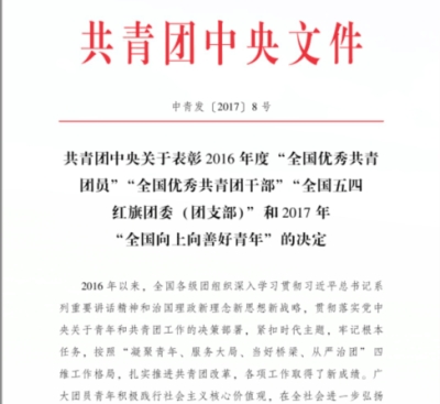 年度“全国五四红旗团委(团支部)”称号,这也是团中央授予基层团组织的最高荣誉。