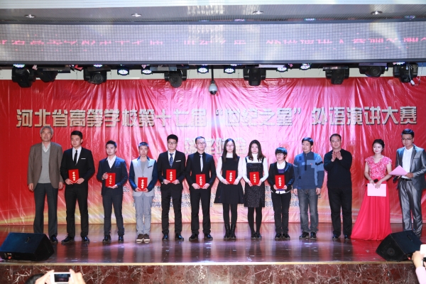 月20日晚,河北省高等学校第十七届“世纪之星”外语演讲大赛颁奖晚会在伟德会议中心隆重举行,河北省教育厅副厅长王廷山、校长杜彩芹、