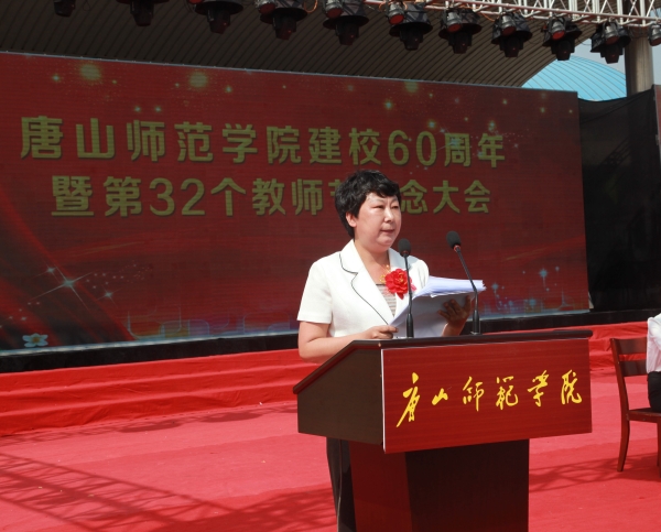 最后,杜彩芹校长发表讲话。她首先代表学校向全体教职员工致以节日的问候,向参加建校60周年纪念活动的各位校友,各界朋友们表示欢迎,并在四个方面作出汇报:一、学校初创与历史沿革。从1956年创立至2007年顺利通过教育部教学工作水平评估,学校复立于良好本科高校之林。一路走来,学校虽几经磨难,但打不倒、压不垮,以一种顽强的毅力,超人的精神一路前行。二、办学现状与内涵特色。学校确立了让“学生满意、家长满意、教职工满意、社会满意、党和政府满意”的办学理念,实践着“以社会需求为导向,以提高人才培养质量为核心,大力实施人才立校、质量强校、特色兴校、开放荣校,全面提高教育教学质量,提升学校办学实力、活力和竞争力”的全新发展战略。三、大学精神与辉煌成就。坚守“勤学修己”的校训,形成了薪火相传的思想向上、学习勤奋、学风扎实、作风朴素、治学严谨、做事规矩的踏实校风。四、未来规划与发展蓝图。“十三五”期间,将以提高应用型人才培养质量为主线,构建科学合理的学科专业结构、完善的应用型人才培养体系,实现应用型人才培养质量、科学研究水平、服务经济社会能力的跨越,坚持办应用型高校、教学中心工作、特色发展、内涵建设不动摇,全面创新人才培养体制、优化内部治理结构、提升依法治校水平、提高服务社会能力、加强党的建设。学校将全面贯彻“从严治校,从严执教”的理念,确保顺利通过教育部本科教学工作审核评估,积极争取专业硕士学位授予权。