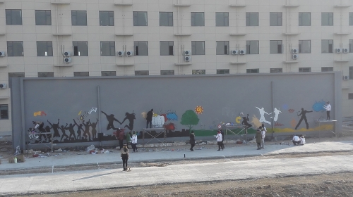美术系对此项工作十分重视,系领导班子专门研究了工作进程。这25名志愿者全部由学生党员、入党积极分子组成,满怀激情进行公益创作。经过10多个小时的连续创作,一幅幅色彩鲜明、生动活泼的图画跃然墙上,使整个街区焕然一新,充满青春正能量,充分展示了美术系大学生的专业素养和精神风貌。曹妃甸大学城文化创意主题街区位于唐山湾生态城,是河北省首个城区创意街区。街区定位为大学城的生活服务配套、大学智力资源的产学研平台、大学生的创新创业基地和最具青春气息的文化创意产业聚集区。街区将于今年5月向社会开放。