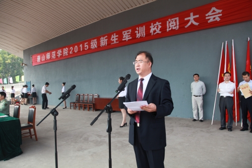 会上,党委常委边宏广讲话并宣布军训团嘉奖通令。首先,他代表学校向辛勤承训的中国人民解放军预备役炮兵72师的领导和全体教官们致以诚挚的敬意,向为应急救护培训提供了大量指导工作的唐山市红十字会表示衷心的感谢,向一直陪伴同学们军训的各位老师、为军训工作提供有力保障的同志们、参训的全体同学致以深切的问候。他提出:“军训生活是短暂的,但内容丰富,意义深远。艰苦的队列训练、严格的内务管理、激烈的拉歌比赛、感人的军训联欢,从中,同学们一定体会到了我党我军优秀的革命传统,感受到了解放军官兵不畏艰苦、细致认真的过硬作风。军训期间,红十字会和学校的老师还给同学们进行了应急救护培训,提高了同学们在紧急情况下实施自救互救的能力。”他希望同学们以此为新的起点,树立崇高的人生理想,磨练坚韧不拔的意志品质,培养良好的道德风尚。把军训中吃苦耐劳的品质、团结协作的精神、严明的纪律作风贯彻到学习、工作、生活中,在未来的人生道路上,坚定信心,勇攀高峰,成就梦想!随后,边宏广部长宣布军训团嘉奖令,表彰了3个先进营、6个先进连、16个先进排、7名优秀营长及优秀教导员、17名优秀政教员、12名优秀教官、5个内务评比先进单位、5个应急救护评比先进单位。与会领导、轩向阳大校以及陈晓星副会长分别向获奖单位和个人颁奖。