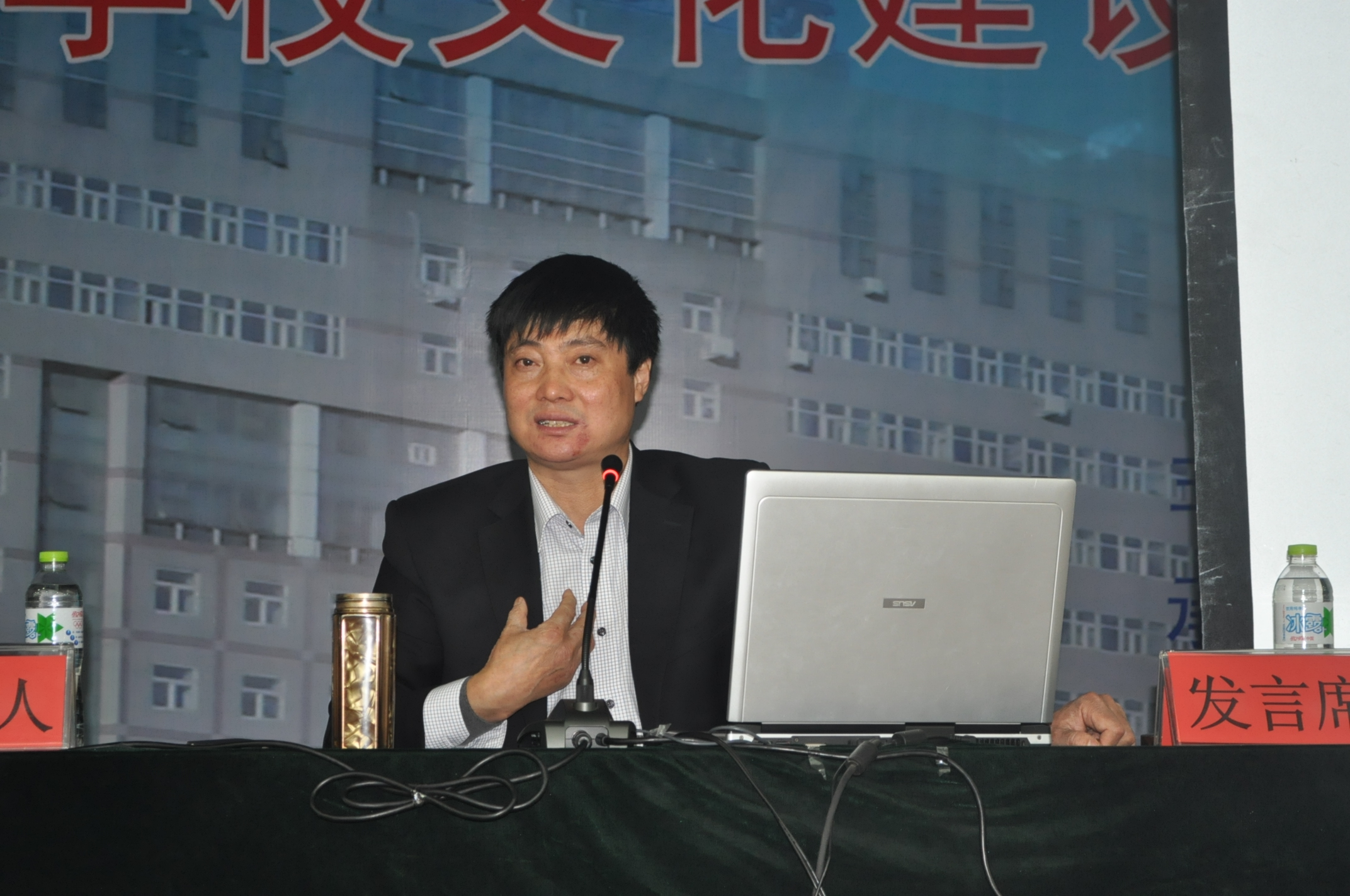 之后,河北省教育学会学校文化研究分会秘书长、伟德教育科学研究所所长彭贤智教授做了题为《学校文化建设的程序与策略》的专题讲座。彭教授围绕学校文化建设工作的相关内容与现场的各位代表进行探讨。对于学校教育问题,他提出以下思考:一是,办具有文化品位和精神感召力的学校。针对学校“无文化”现象,他说:“一个学校只注重硬件建设,只会有表面的实力,但没有魅力;如果能加强文化建设,以深厚的主题文化为底蕴,打造办学特色,才能提升学校的办学形象,因此,学校文化建设要走出表面,走向升华。”二是,打造学习型学校,创造优质教育资源。他提出:校长要成为学校读书、研究的楷模,学校要成为学习型的组织。三是,做一个有思想的校长。他指出:构建校长成长的两个“车轮”,做勤读书、勤思考、勤写作、勤跟进的“四勤型”校长;做管理工作问题化、管理问题科研化、科研成果管理化、管理讨论反思化的“四化型”校长。四是,一流学校的标准——让主题文化进心灵,成为师生的行为方式,推进文化管理的本质。针对学校文化的概念与结构和学校文化建设的阶段这两部分内容,彭教授又向大家做了具体的阐释和说明。