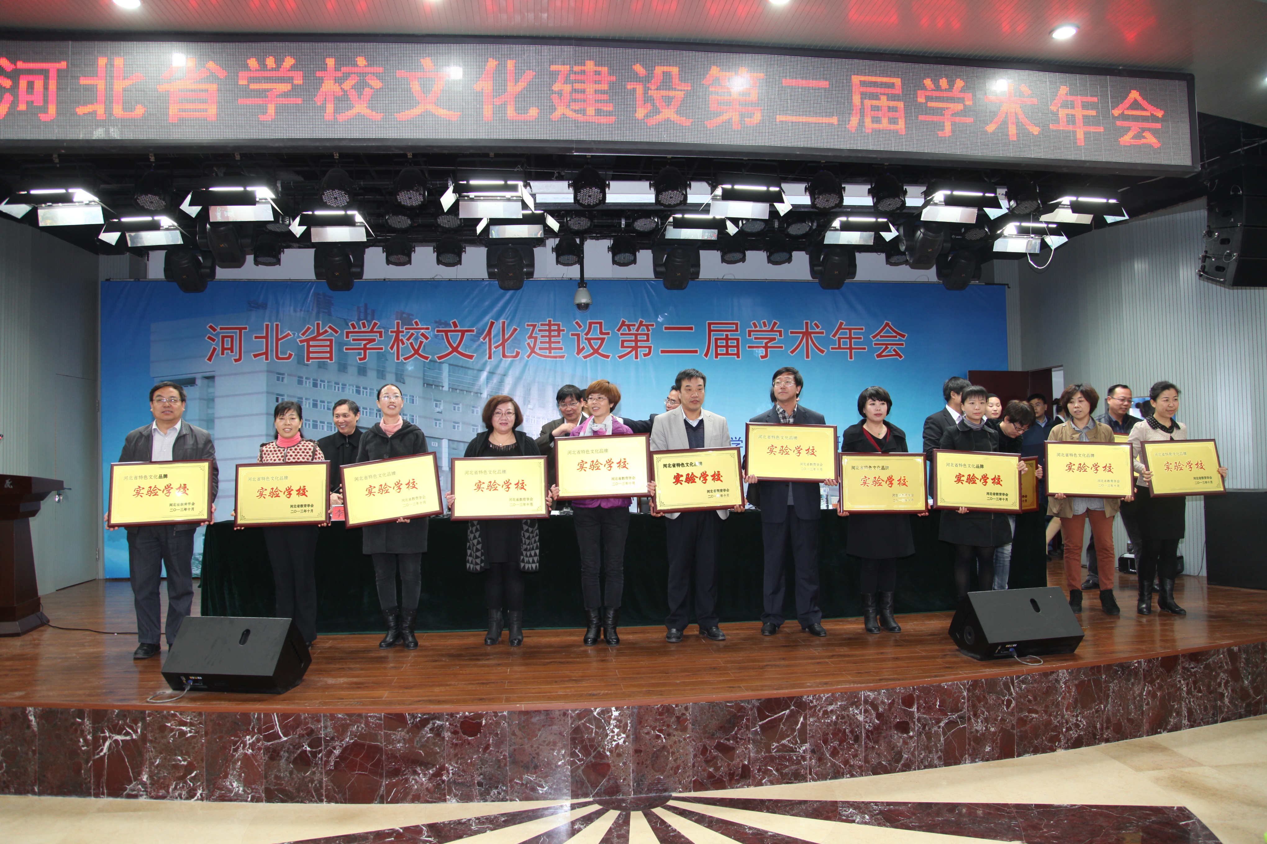 大会第四项,与会领导给38所河北省首批特色文化品牌实验学校授牌,对以上学校取得的文化建设成果给予充分肯定和极大鼓励。