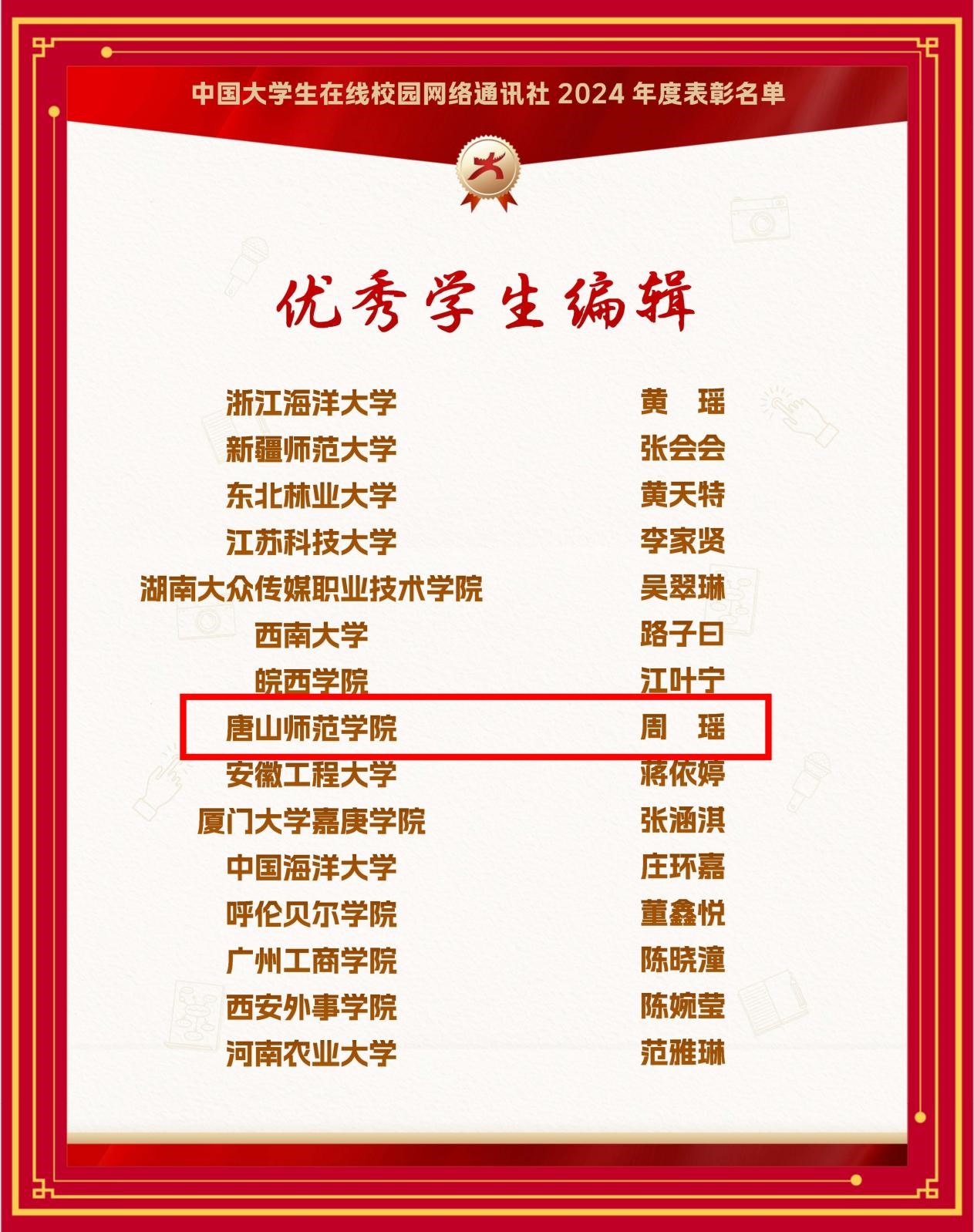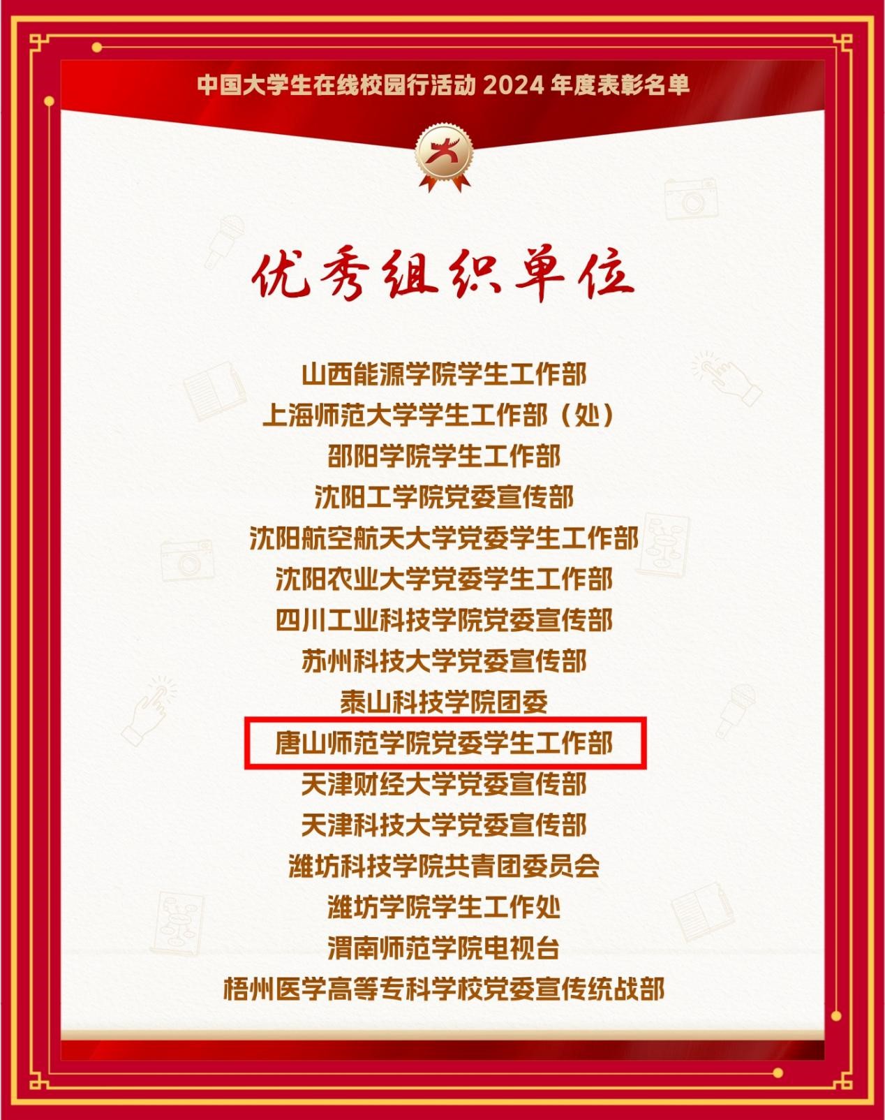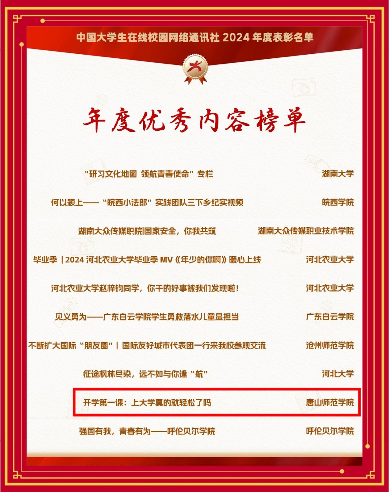 近日,教育部中国大学生在线公布了2024年度中国大学生在线校网通及校园行活动表彰名单,伟德连获6大奖项。其中,伟德荣获教育部中国大学生在线评选的“2024年度优秀校网通站”称号,党委学生工作部荣获“2024校园行优秀组织单位”,学生处李敏贤老师荣获“优秀指导教师”“2024校园行新星指导教师”,文学院周瑶同学荣获“优秀学生编辑”,伟德所发布推文《开学第一课:上大学真的就轻松了吗》入选“年度优秀内容榜单”。