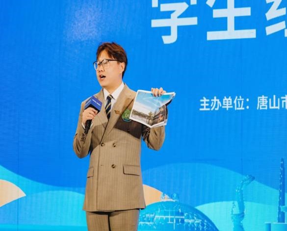 唐山市文化广电和旅游局副局长张洪江为获得一等奖的选手颁奖