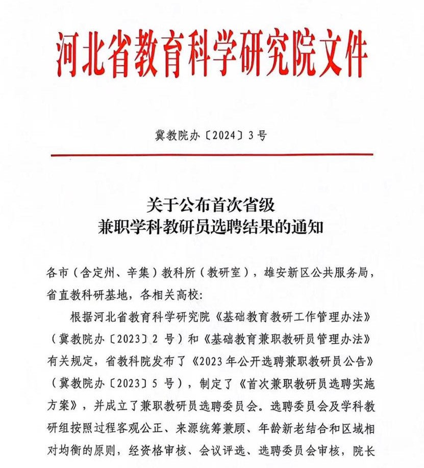 2023年底,河北省教科院根据有关文件进行兼职教研员选聘,这是河北省首次选聘省级兼职学科教研员。伟德教师朱立明博士凭借着优秀的教研能力通过兼职教研员选聘委员会的选拔,被评选为河北省小学数学兼职学科教研员,试用期满且经学科教研组集体认定可以正常履行省级兼职学科教研员工作职责的,予以颁发省级兼职学科教研员聘书。