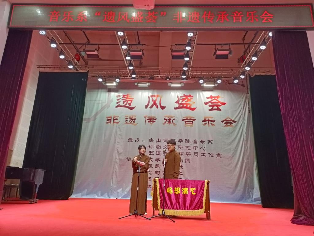 本次音乐会由音乐系、评剧文化研究中心、艺途相伴辅导员工作室主办,大学生评剧团、风韵陶笛社、畅想演绎协会、新韵古琴社承办。音乐会涵盖中华戏曲、传统民乐、古典乐器、相声等多种非遗艺术,为现场的观众带来了非遗的“盛宴”。同学们了解了非遗文化,深受感触,纷纷表示,要持续学习了解学习非遗艺术、成为非遗的传承者和传播者,为非遗传承、传播贡献青春力量。