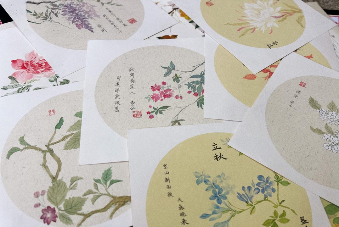在比赛过程中,同学们纷纷组队参与,以团队协作的方式展开创作。大赛特别设置了美学和设计两个赛道,为参赛者提供了更为广阔的创作空间。在美学赛道中,参赛者以剪纸艺术、国画白描、油画、水彩等多样化的绘画手法,展现了二十四节气中丰富多彩的自然景象和人文内涵。作品中,仕女图的婉约之美、诗句的含蓄之意、篆刻艺术的古朴之风以及书法的流畅之韵,都得以淋漓尽致地表达;设计赛道则更加注重艺术与实用的结合。参赛者将传统文化元素与现代设计理念相融合,创作出了一系列富有创意和实用性的设计作品。