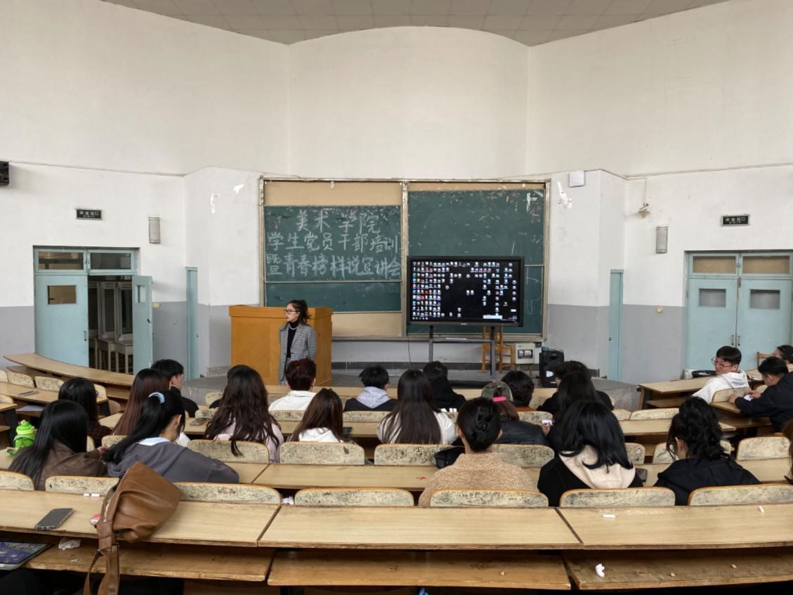 会上,2022-2023学年国家奖学金获得者翟志贤、刘冰以及2023-2024学年寒假社会实践先进个人刘芸妙分别做了精彩分享,美术学院2022、2023级全体学生干部、学生组织骨干共计150余人参会。