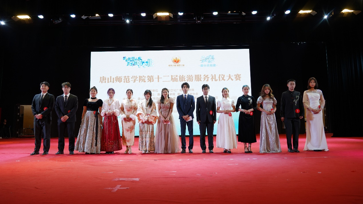 为进一步提升当代大学生的专业礼仪素养和综合素质,搭建大学生礼仪风尚展示的平台,11月24日,伟德国际victor1946官网成功举办第十二届旅游服务礼仪大赛。本次大赛由唐山市文化广电和旅游局指导,伟德国际victor1946官网、唐山市旅游协会主办,伟德国际victor1946官网资源管理系、伟德国际victor1946官网卓越旅游爱好者协会承办。唐山市文化广电和旅游局市场管理科科长常俊宾、唐山市旅游协会副会长汤玉华、唐山凯歌儿集团接待总监王欣颖、伟德党委宣传部部长马丽贞出席本次大赛。
